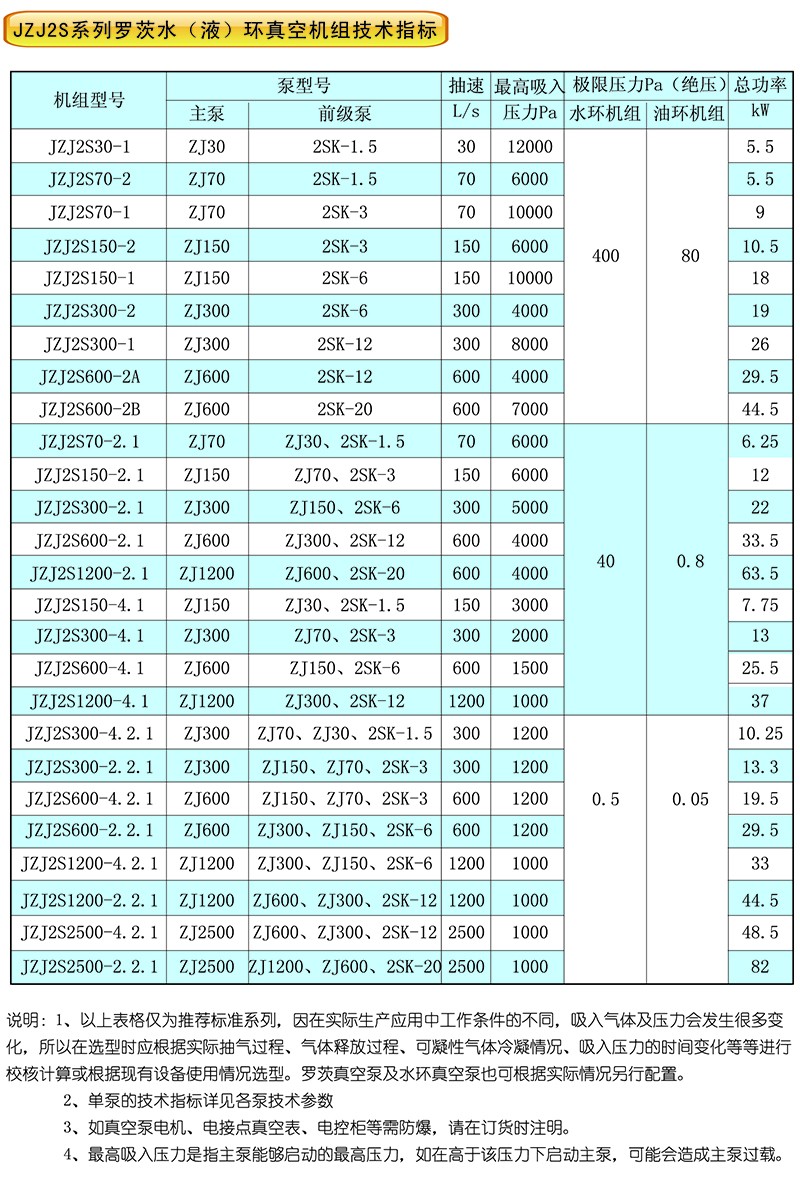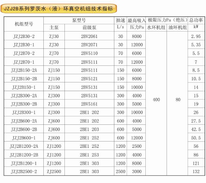 更寬,但其所消耗的功率也更大。如果能確認(rèn)被抽系統(tǒng)的工作壓力<2000Pa時(shí),應(yīng)優(yōu)先選用JZJ2B300 -4.1機(jī)組