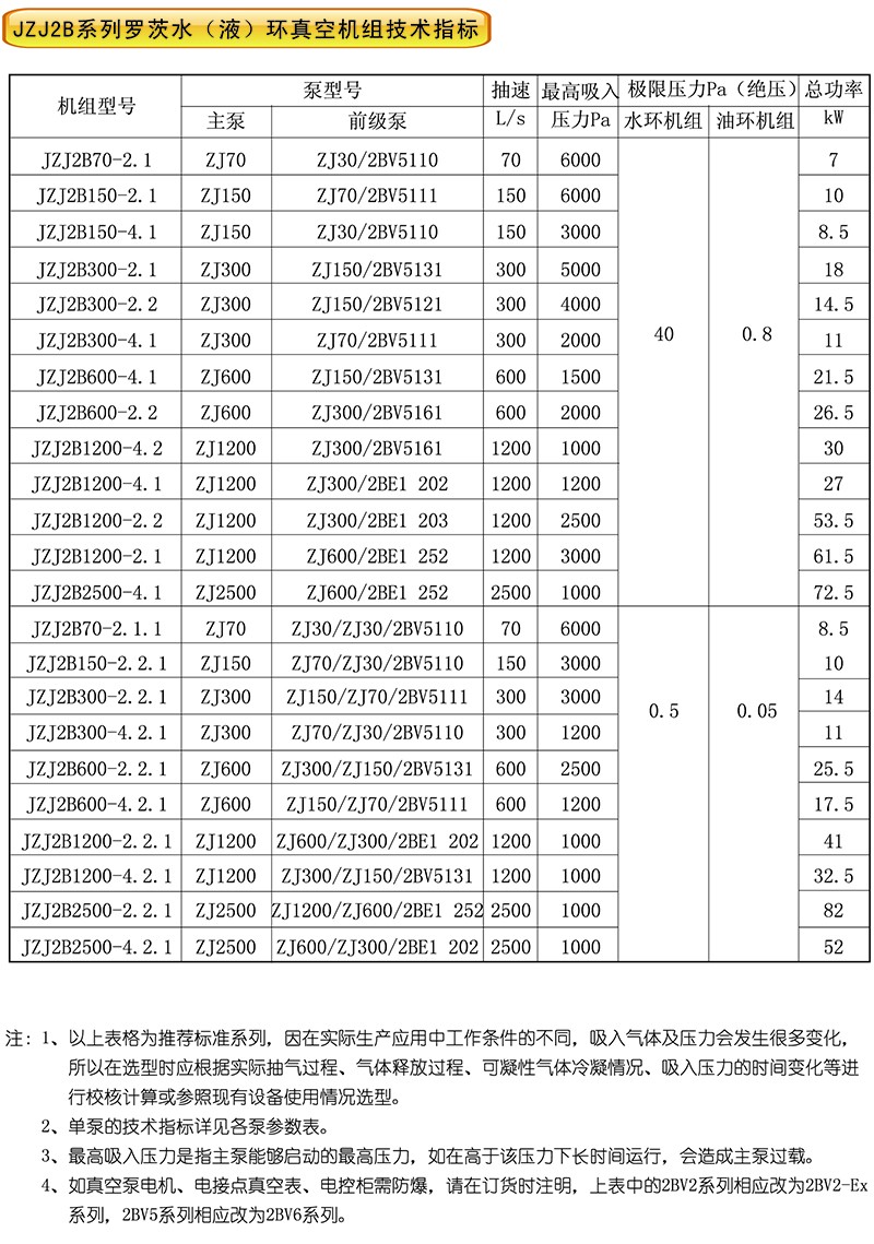率及極限壓力都是相同的,所不同的是它們的工作范圍及消耗的功率不同,JZJ2B300-4. 1機(jī)組的正常工作范圍