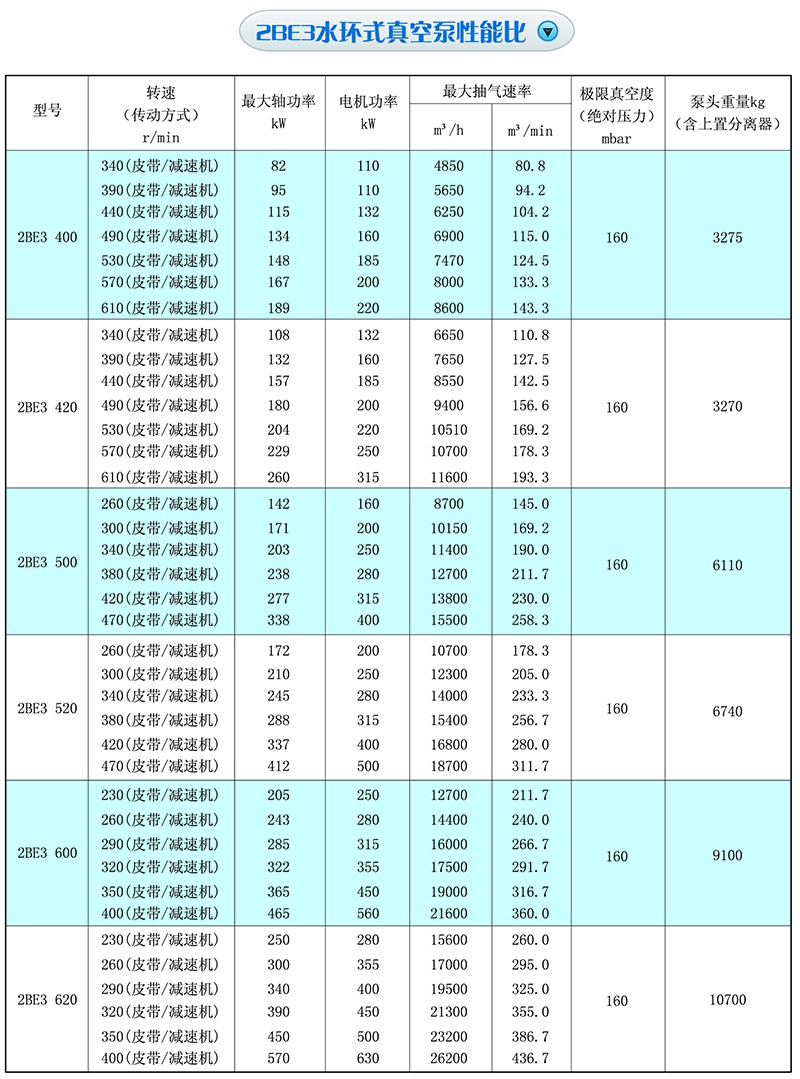 ◆泵體全部采用鋼板或不銹鋼板制作、提高了2BE3真空泵的使用壽命。